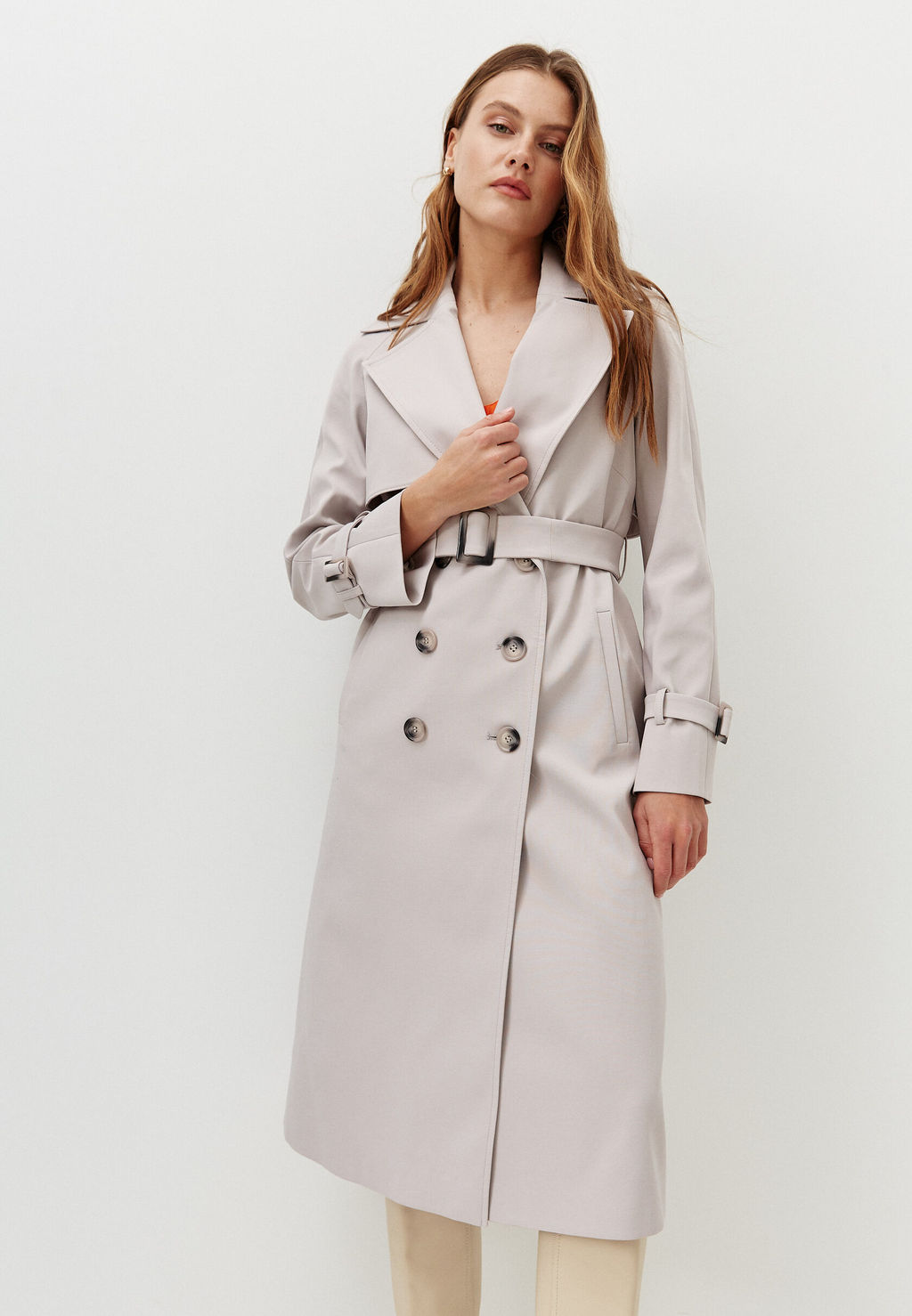 Двубортный тренч миди с поясом в тон