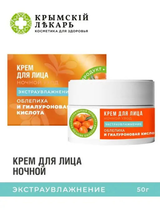 Крем для лица ночной Экстраувлажнение Облепиха и гиалуроновая кислота, 50г