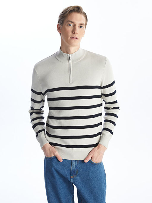 Dik Yaka Uzun Kollu ?izgili Erkek Triko Kazak