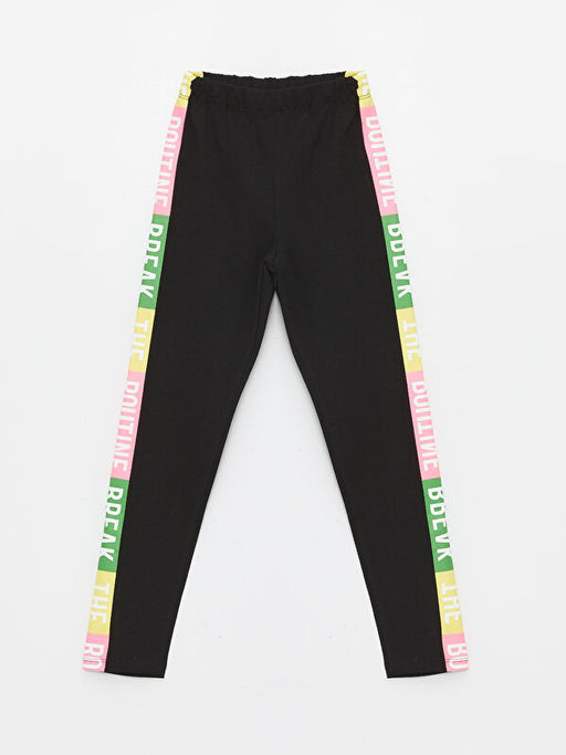 Beli Lastikli Bask?l? K?z ?ocuk Uzun Tayt