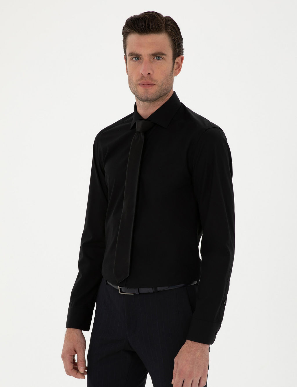 Черная классическая хлопковая рубашка приталенного кроя