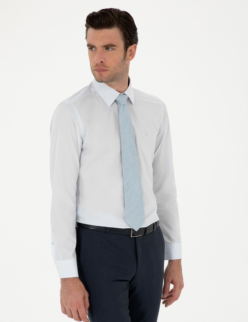 Голубая классическая хлопковая рубашка приталенного кроя