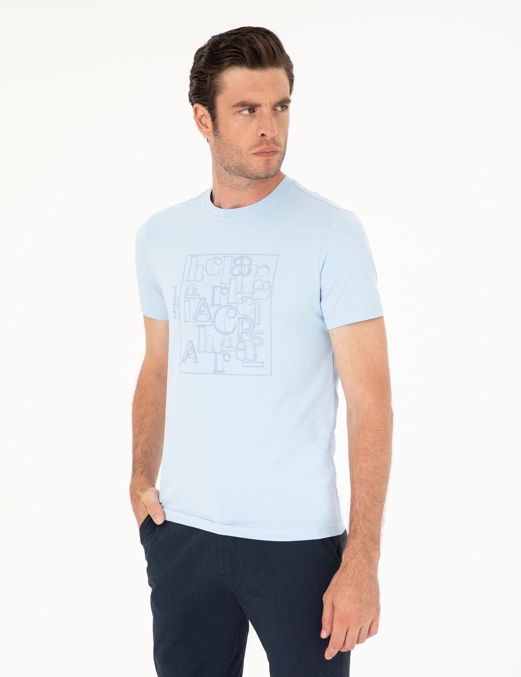 Голубая зауженная футболка с круглым вырезом