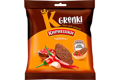 Цена за 5 шт.Кириешки, гренки со вкусом Аджика и соусом Heinz Сальса жгуче-острым, 70 г