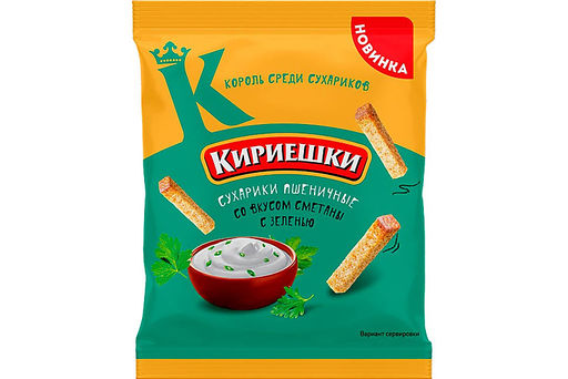 Цена за 5 шт.Кириешки, сухарики со вкусом сметаны с зеленью, 100 г