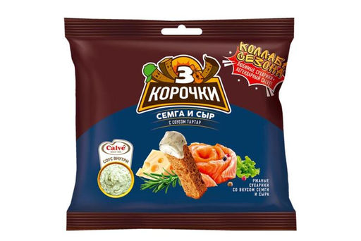 Цена за 5 шт.3 Корочки, сухарики со вкусом сёмги с сыром и соусом тар-тар Calve, 85 г