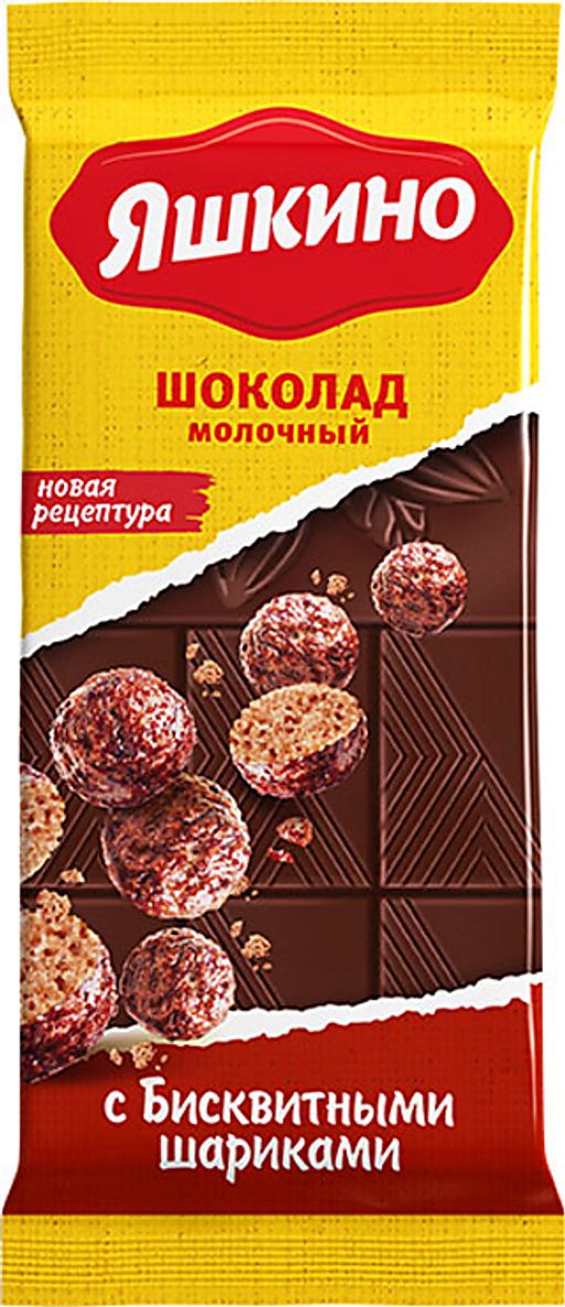 Яшкино, шоколад молочный с бисквитными шариками, 85 г