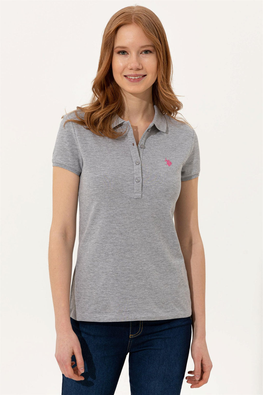 Женская серая меланжевая базовая футболка с воротником-поло Неожиданная скидка в корзине