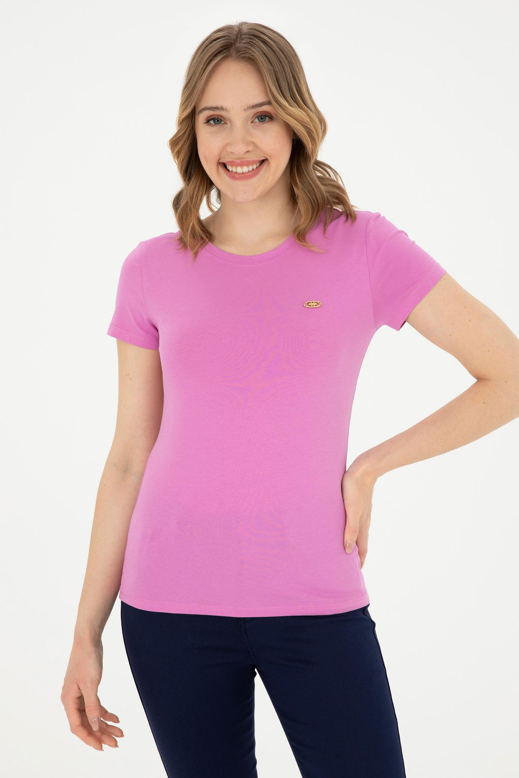 Женская фиолетовая базовая футболка с круглым вырезом Неожиданная скидка в корзине