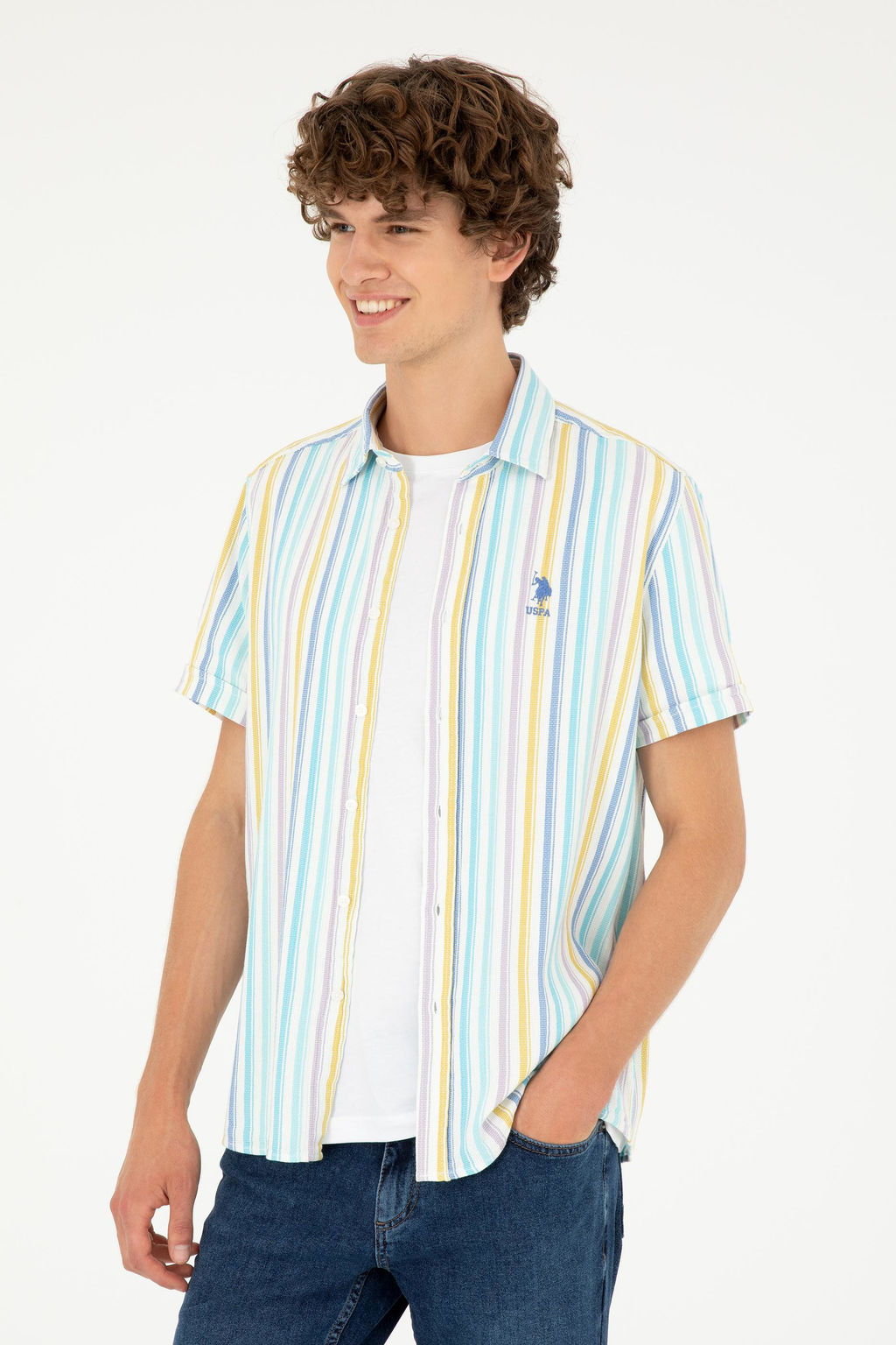 Мужская темно-синяя рубашка с коротким рукавом Неожиданная скидка в корзине
