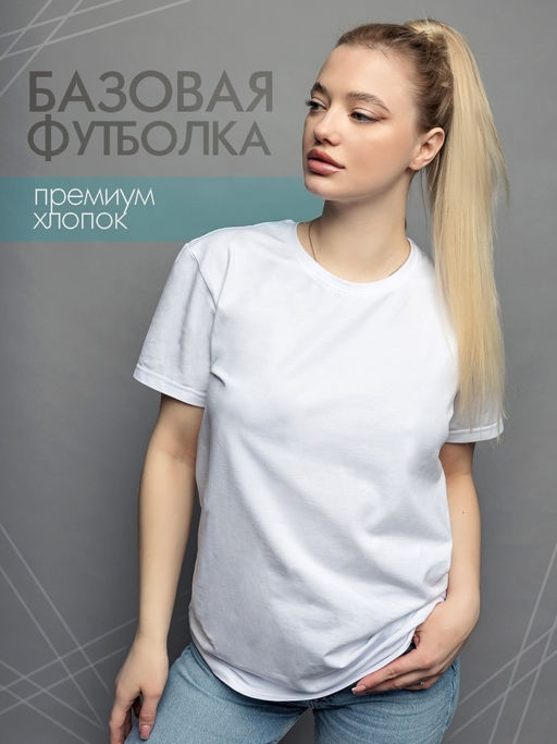 Хлопковая однотонная футболка белый 302674