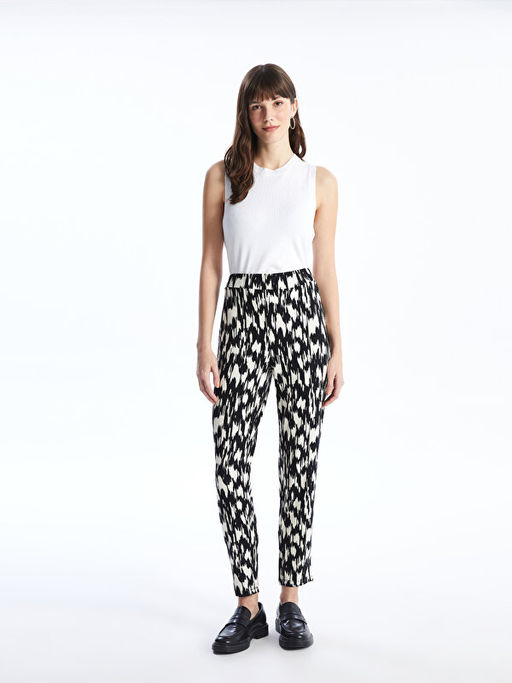 Beli Lastikli Rahat Kal?p Desenli Kad?n Pantolon