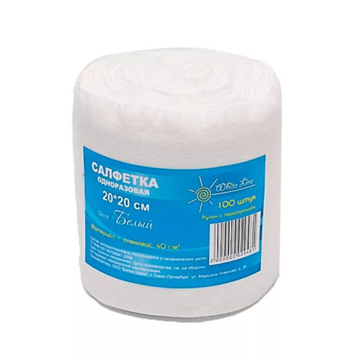 Салфетка спанлейс 20*20 см Белый в РУЛОНЕ (100шт.)