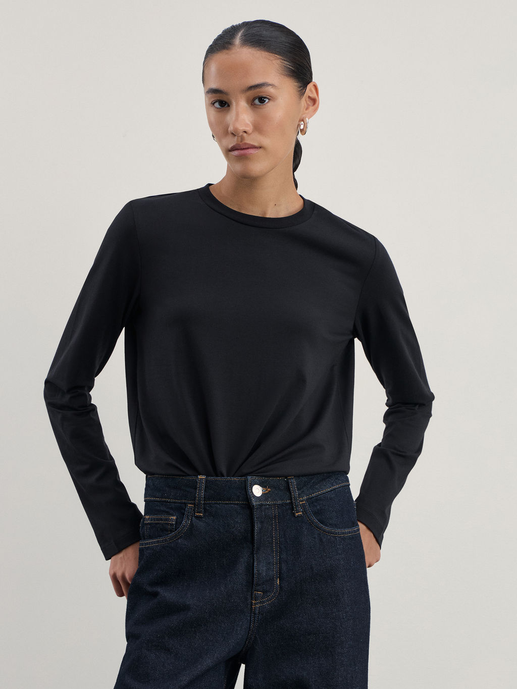 Однотонный базовый лонгслив из хлопка / Zarina