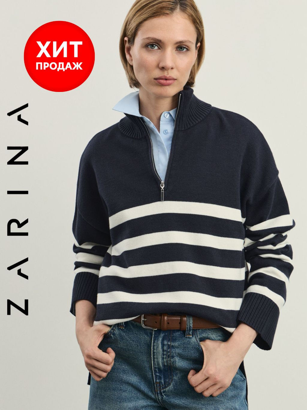 Джемпер на молнии в полоску / Zarina