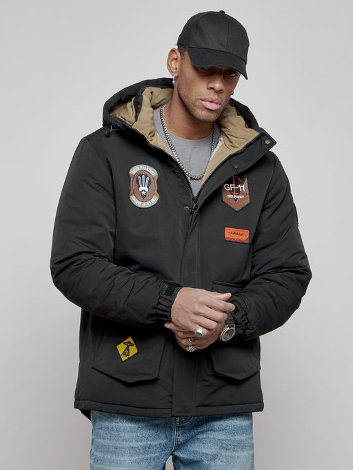 Куртка мужская зимняя с капюшоном молодежная черного цвета 88917Ch