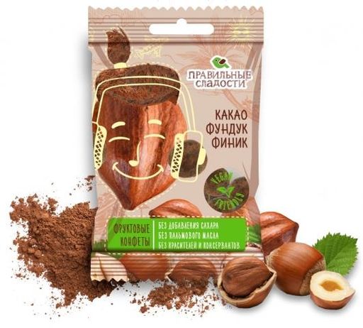 Цена за 4 уп Фруктовые конфеты Какао, Фундук, Финик 50 г
