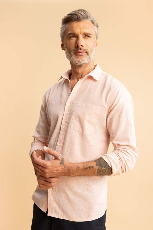 Рубашка обычного кроя с длинными рукавами из смесового льна