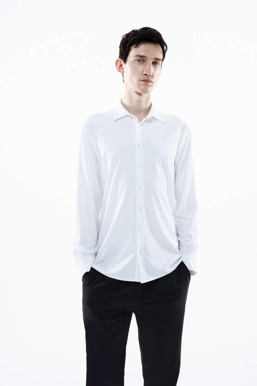 Рубашка узкого кроя с воротником-поло и длинными рукавами