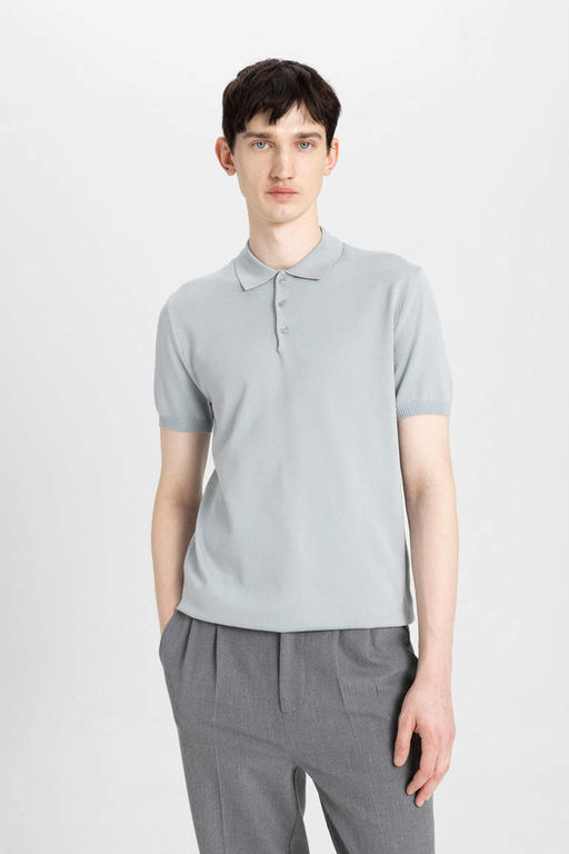 Трикотажная футболка-поло приталенного кроя с короткими рукавами