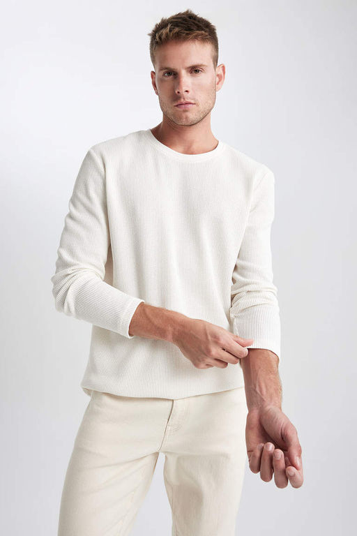 Базовая футболка узкого кроя с круглым вырезом и длинными рукавами