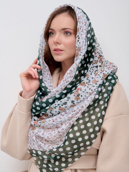 Большой, мягкий, тонкий и очень нежный двусторонний палантин с рисунком в стиле арт-деко
