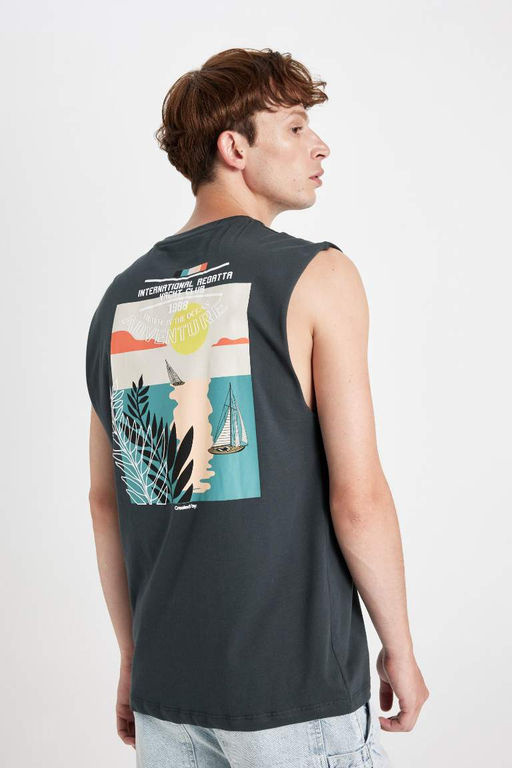Майка свободного кроя с круглым вырезом и принтом