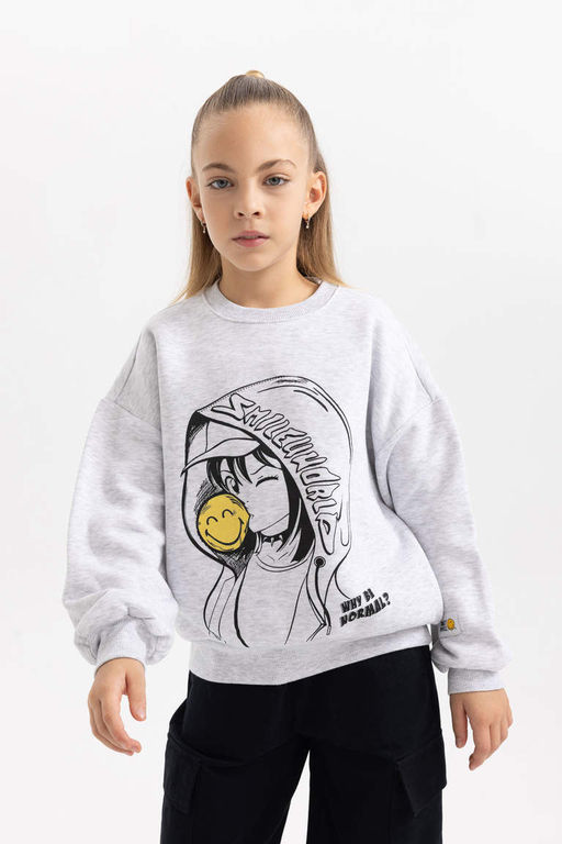 Толстовка большого размера SmileyWorld для девочек с круглым вырезом и мягкой ворсистой изнанкой