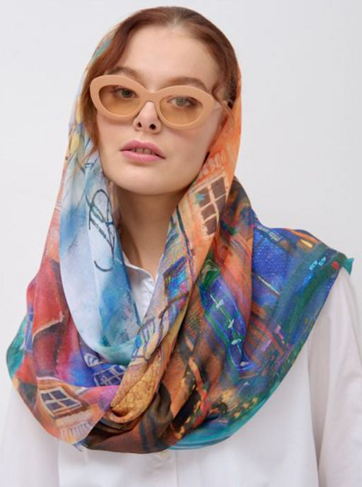 Большой, красивый двусторонний платок с рисунком в стиле "арт-деко"и необычной текстурой ткани