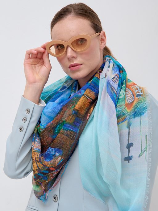 Большой, красивый двусторонний платок с рисунком в стиле "арт-деко"и необычной текстурой ткани