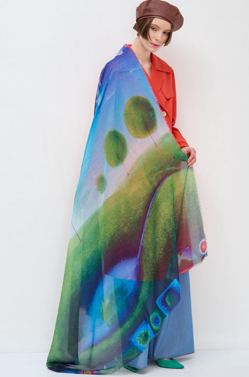 Большой, красивый двусторонний платок с рисунком в стиле "арт-деко"и необычной текстурой ткани