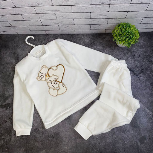 Костюм велюровый: джемпер, штаны, арт.dV-KS023-VL, цвет молочный с мишкой