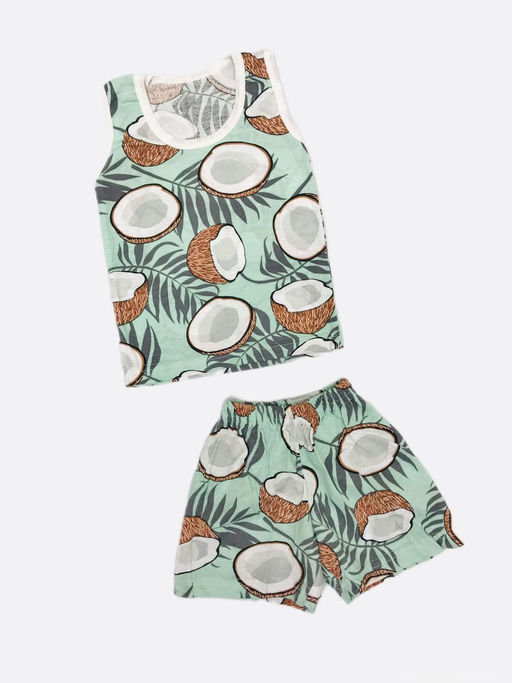 Майка с шортами кокосы, арт.kC-KS049-SU, ткань супрем мятный