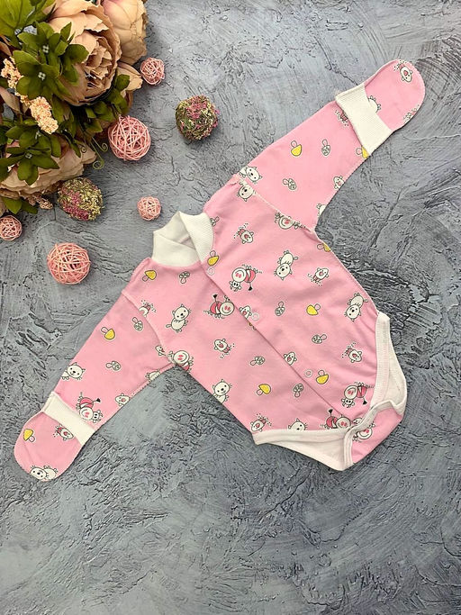 Боди футер с длинным рукавом варежкой, арт.XC-BD137-ITn, розовый коровы