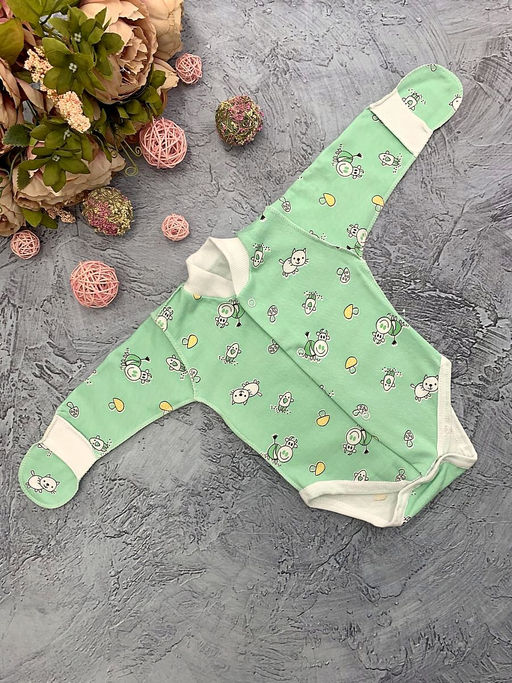 Боди футер с длинным рукавом варежкой, арт.XC-BD137-ITn, зеленый коровы