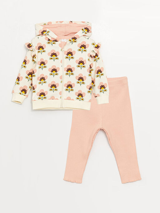 Kap??onlu Uzun Kollu K?z Bebek Fermuarl? Sweatshirt ve Tayt 2li