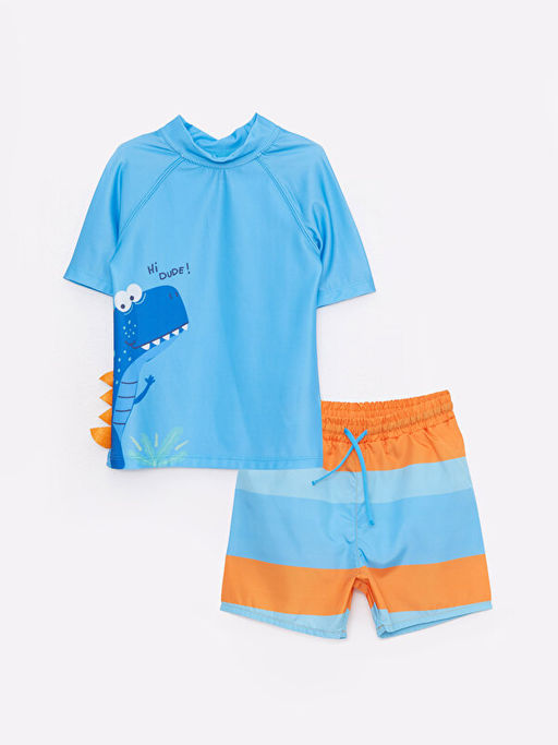 K?sa Kollu Bask?l? Erkek Bebek Y?zme ?st ve ?ort 2li Tak?m
